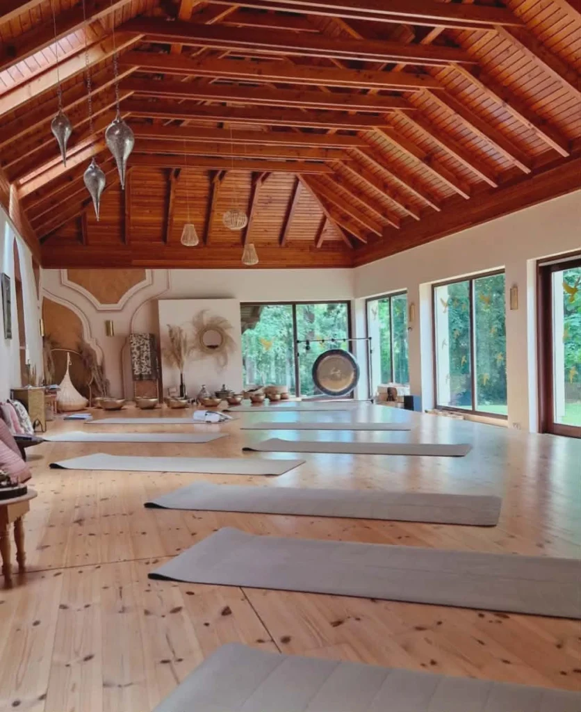 - Minden kellék a programokhoz (jógaszőnyeg, jógatéglák, meditációs párna, takaró)